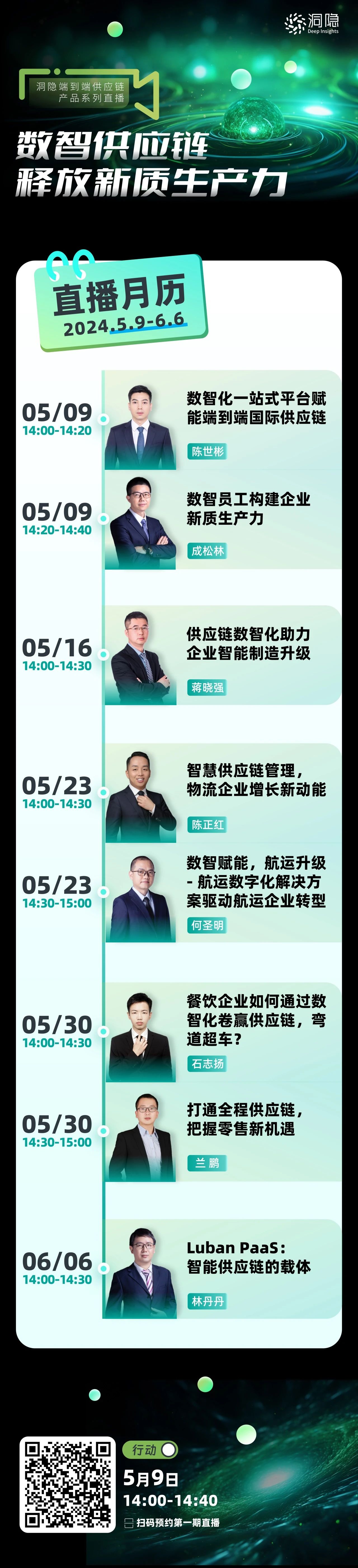 在此變局下,洞隱基于面向供應(yīng)鏈未來的產(chǎn)品設(shè)計(jì)和20年供應(yīng)鏈數(shù)字化實(shí)戰(zhàn)累積,特別策劃了“數(shù)智供應(yīng)鏈,釋放新質(zhì)生產(chǎn)力”系列直播,期待可以為貨主、物流企業(yè)實(shí)現(xiàn)生產(chǎn)力升級(jí)提供路徑參考和落地支持。