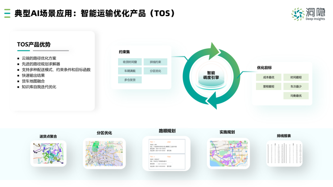 智能運輸優化主要應用于物流運輸配送場景,由洞隱AI聯合實驗室自主研發,幫助企業在物流配送應用場景中優化運輸路徑、車輛調度和裝載,減少運輸時間、降低運輸成本、踐行綠色低碳的物流理念。同時,該產品已經過眾多洞隱合作客戶實踐落地,并進行了多輪迭代升級,目前已達到3.0版本。