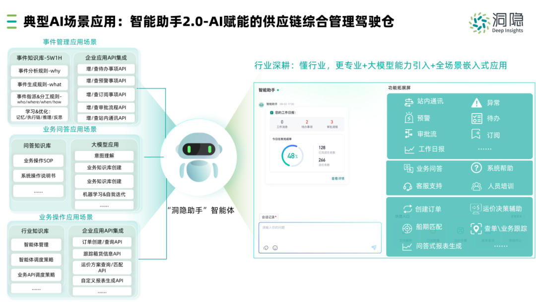 從智能訂艙的自動化和實時跟蹤能力,智能關務的精準報關和最優稅率建議,到智能運輸優化的高效調度和成本控制,智能助手的全面管理支持和業務流程優化,再到AI開發平臺的低代碼快速部署和數字員工的自動化操作,洞隱供應鏈智能產品不僅是AI技術的體現,也是企業數智化轉型的加速器,更是供應鏈管理效率提升的催化劑。