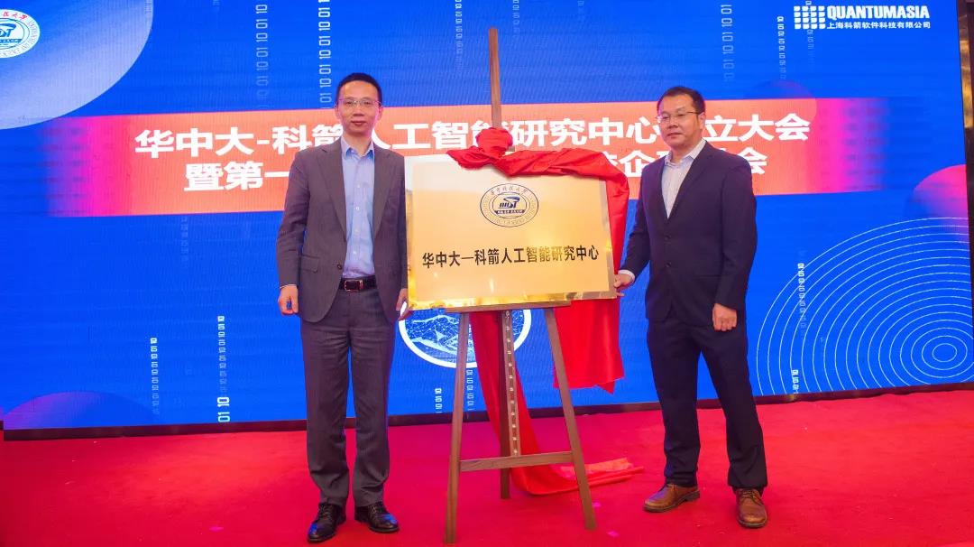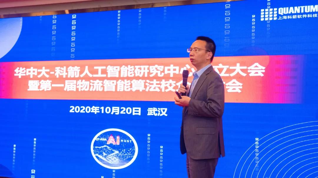 2020年10月20日,華中大—科箭人工智能研究中心成立大會暨第一屆物流智能算法校企研討會于在武漢召開,科箭軟件總經理劉斌和華中科技大學秦虎教授共同為華中大—科箭人工智能研究中心揭牌。