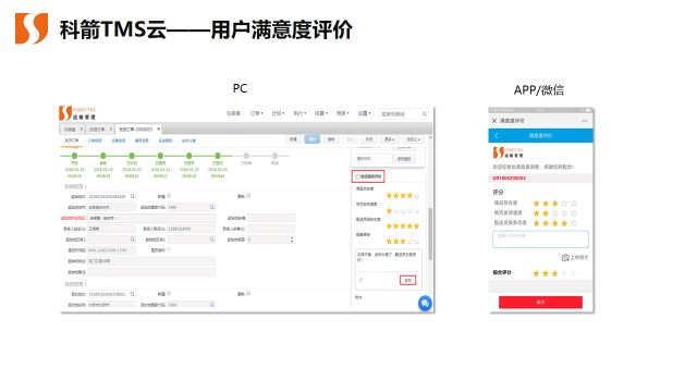 我們在網購后都會被要求就產品、物流、服務進行評價,以便讓商家了解客戶滿意度,及早發現問題,以免影響客戶回購。在企業級服務中也是一樣,客戶在訂單‘已簽收’狀態的發貨訂單界面可進行滿意度評價,也可以在微信或APP的全程跟蹤已簽收模塊進行滿意度評價。