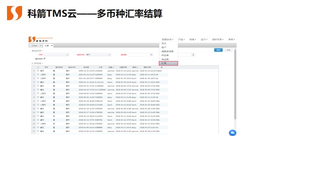 隨著許多客戶的國際化發展,跨國多語言支持、多幣種結算、匯率問題應運而生,科箭TMS云即多語言支持后,對多幣種結算的支持全面解決了上述的各種問題。支持多本位幣核算和多幣種交易時的匯率轉換,支持在不同國家地區的匯率制度。