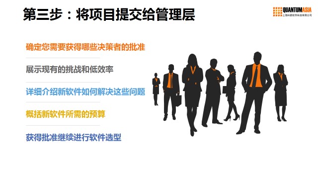 到這時,你對市場上有些什么軟件以及你需要什么樣的功能已經有了基本認識。 您可能對實施新系統的前景感到興奮。 等一下! 如果您不是此次購買的最終決策者,那么您需要在進一步了解之前讓管理層接受這個想法。您需要提出一個令人信服的計劃,即新軟件的好處遠遠超過成本。 優勢包括提高整個物流運營的可視性、成本降低、效率提高,以及更好的內部和外部協作。 成本應包括軟件、服務、培訓和組織調整等間接成本。