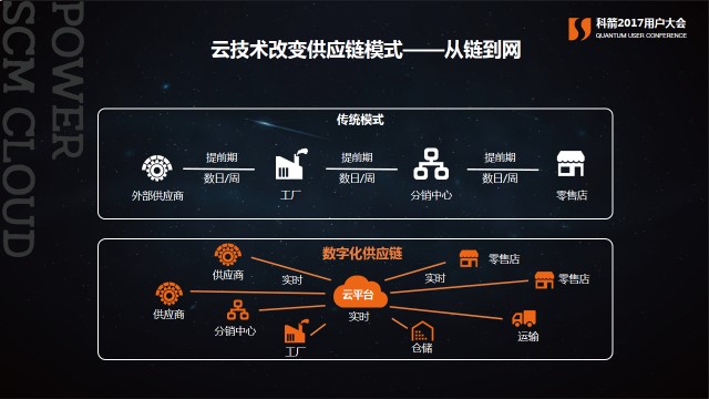 云技術(shù)改變了供應(yīng)鏈的模式,使供應(yīng)鏈從傳統(tǒng)的鏈?zhǔn)降骄W(wǎng)狀,信息實(shí)時(shí)傳遞,多方高效協(xié)同,提高供應(yīng)鏈效率及響應(yīng)能力。