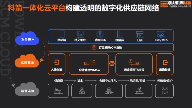 科箭供應(yīng)鏈管理云平臺(tái)-Power SCM Cloud,是一個(gè)整合訂單管理(OMS)、運(yùn)輸管理(TMS)、倉儲(chǔ)管理(WMS)等供應(yīng)鏈流程的云解決方案。該方案基于多年制造及物流行業(yè)經(jīng)驗(yàn),融合云計(jì)算、移動(dòng)、社交、大數(shù)據(jù)及消費(fèi)級(jí)產(chǎn)品設(shè)計(jì)技術(shù),讓用戶使用更便捷,讓管理決策更智慧,讓企業(yè)連接更順暢。通過最佳實(shí)踐的實(shí)施方法論,可以幫助客戶快速實(shí)現(xiàn)投資回報(bào)。
