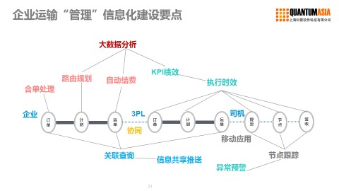 科箭銷售總監(jiān)任捷先生對業(yè)內運輸?shù)墓芾碜鞒霭l(fā)言:十年磨劍,TMS云助力企業(yè)運輸管理。任捷先生表示:物流的需求一直在改變,由20年前企業(yè)管理核心圍繞產(chǎn)供銷,物流僅僅起到輔助作用,到十年前企業(yè)開始關注物流成本,合同物流模式的涌現(xiàn),再到現(xiàn)今線上線下融合,企業(yè)開始轉向關注運輸管理績效。這些轉變對信息化的推動是非常明顯的。在當下經(jīng)濟形式不是特別樂觀的情況下,各行業(yè)對內控的要求越來越高,供應鏈的高度信息化必要性已經(jīng)完全體現(xiàn),但是目前行業(yè)內對于供應鏈管理還不成熟,由于整條供應鏈的不透明,執(zhí)行端能力不夠,管理的規(guī)范性不足,供應鏈管控很難達到企業(yè)的要求。