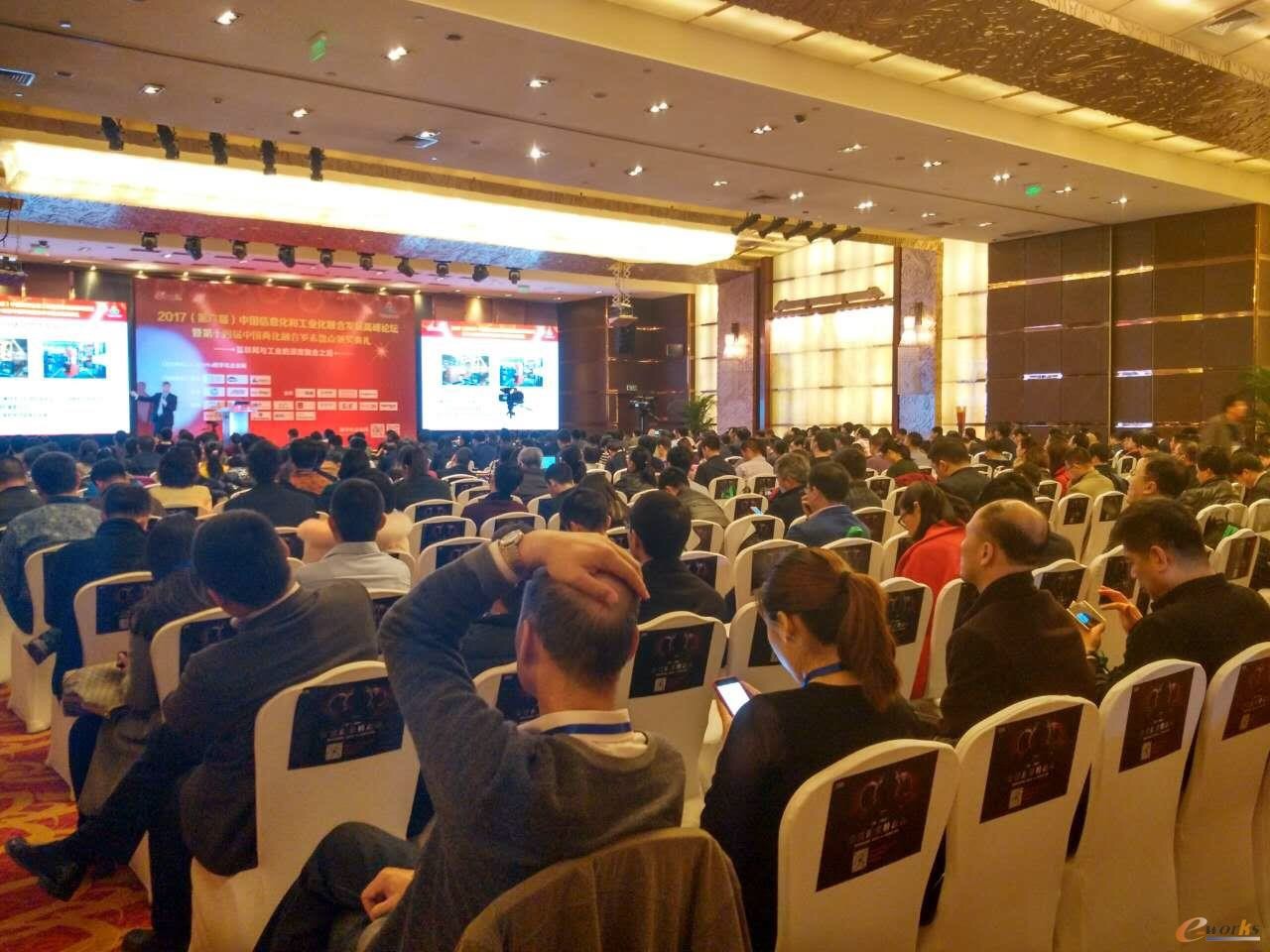 本次論壇,邀請了制造業(yè)專家、知名制造業(yè)企業(yè)CEO、CIO、主流智能制造解決方案提供商和工信部下屬研究機構(gòu)的專家,共同探討在中國制造2025大背景下我國制造企業(yè)與互聯(lián)網(wǎng)融合之道,分銷互聯(lián)網(wǎng)與工業(yè)深度融合的成功案例,研討制造業(yè)與互聯(lián)網(wǎng)融合發(fā)展推進(jìn)策略。超過400名專業(yè)人士齊聚一堂,共同探討和研究信息化的發(fā)展之路。e-works總編黃培先生致開幕詞,著名制造業(yè)專家李培根教授對2016-2017中國制造業(yè)十大熱點和兩化融合十大熱點進(jìn)行了剖析,解讀了過去一年制造業(yè)及兩化融合領(lǐng)域的重大事件。