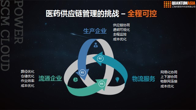 醫藥供應鏈管理的最大挑戰是全程可控。云服務通過連接供應鏈上各個參與者,具有高度協同化和高效化的特點,并保持全流程的透明度,讓整個業務過程變得可視,從而達到全程監控的目的。